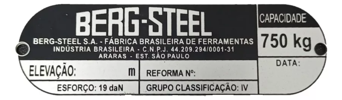 PLACA DE IDENTIFICAÇÃO PARA TALHAS DE ALAVANCA 750KG.